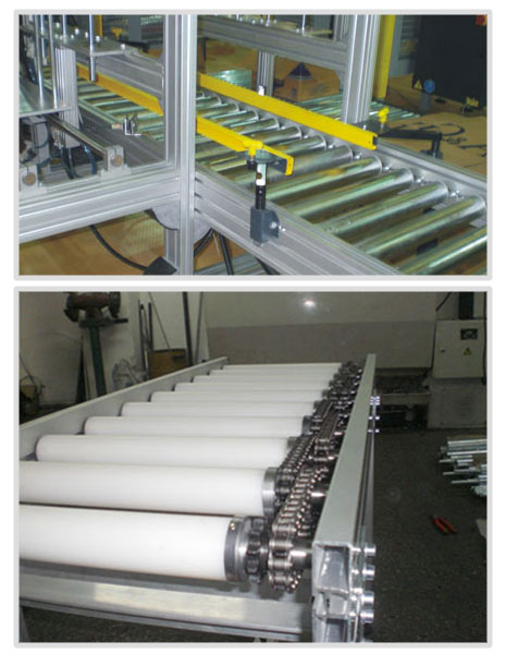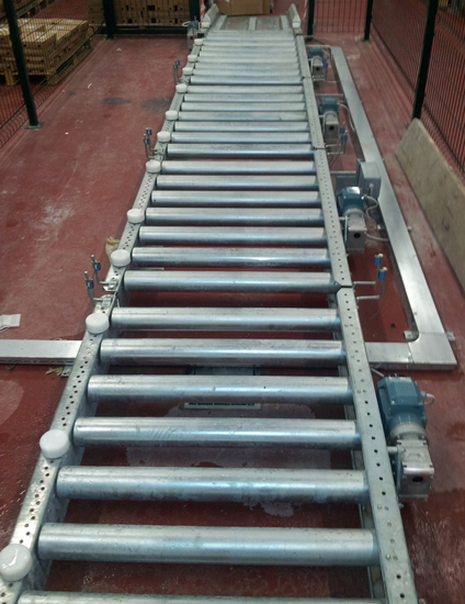 Tahrik rulolu konveyörler; Koli, kumaş gibi kütlesel ürünlerin zincir ve motorun rulolara verdiği hareket sayesinde bir yerden bir yere götürülmesi sağlanır. Ruloların yuvarlak olması taşımayı kolaylaştırır.